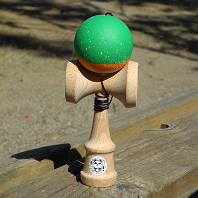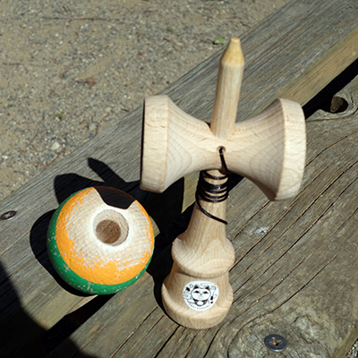 (1)から(6)は、ENGI KENDAMAのnew shapeを使用しています。2018年に発売されたモデルです。ブナで手触りが優しいけん玉で、愛用しています。使い込んだせいか、ラバー塗装がかなり剥げてきてしまっています。